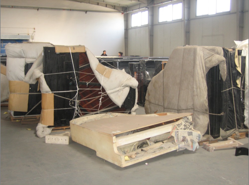 拍卖师陈文告诉记者,拍卖涉及的362台旧钢琴中,有80多台是雅马哈原装钢琴,“所有旧钢琴已完成翻新,包装完好,可直接销售。”陈文说,其中有一台生产于1950年的象牙键钢琴价值不菲。
